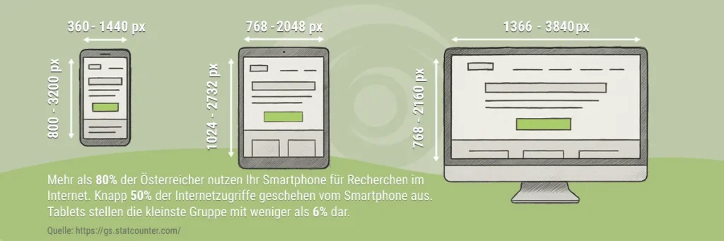 Gerade für Unternehmen in Wien, Niederösterreich und Umgebung ist das relevant. Lokale Suchanfragen laufen fast immer mobil ab. Responsive Webdesign ist Voraussetzung, um überhaupt gefunden zu werden.
